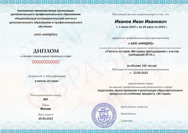 Диплом о профпереподготовке, если учились по программе свыше 250 ч.