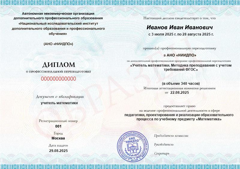 Диплом о профпереподготовке, если учились по программе свыше 250 ч.