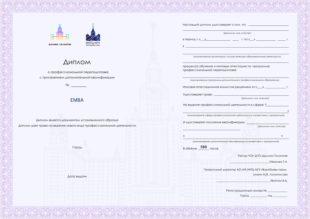 Диплом о профессиональной переподготовке московского института