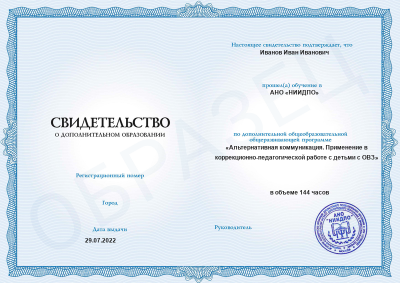 Свидетельство о дополнительном образовании. Вышлем его на вашу электронную почту в течение 14 рабочих дней после окончания обучения.