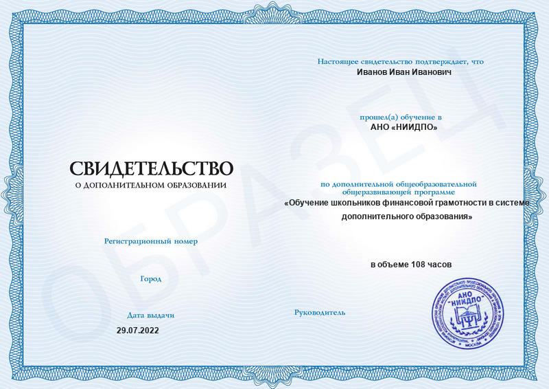 Обучение школьников финансовой грамотности в системе дополнительного образования (108ч)