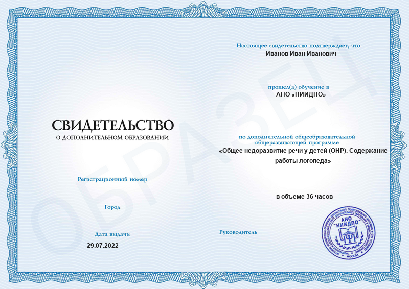 Нет, это не предусмотрено законом. Форма обучения (заочная с применением дистанционных образовательных технологий) прописывается только в вашем договоре с АНО «НИИДПО».