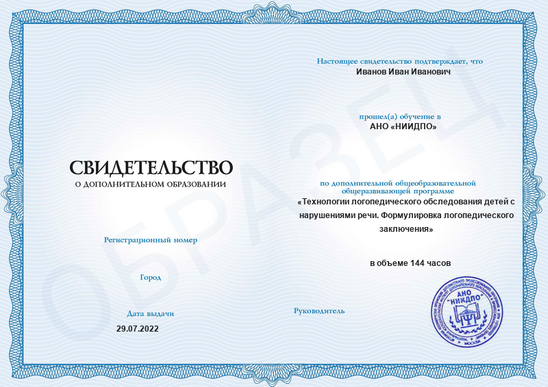 Технологии логопедического обследования детей с нарушениями речи. Формулировка логопедического заключения (144ч)