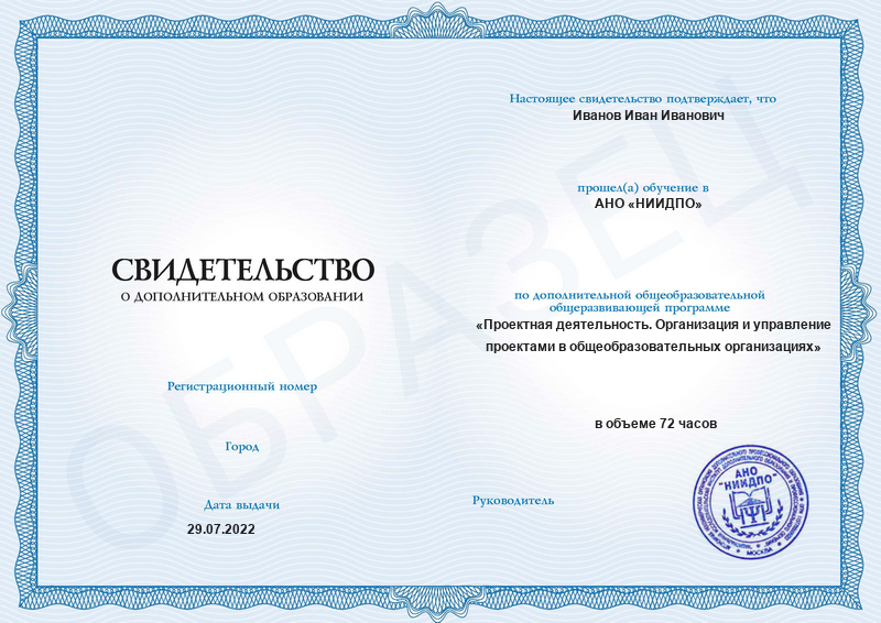 АНО «НИИДПО» – автономная некоммерческая организация, которая обладает теми же полномочиями, что государственные образовательные учреждения. Департамент образования города Москвы выдал АНО «НИИДПО» лицензию на осуществление образовательной деятельности. Проверить наличие разрешительной документации можно на сайте Рособрнадзора в разделе «Сводный реестр лицензий». Для этого достаточно ввести ИНН 7724318601.