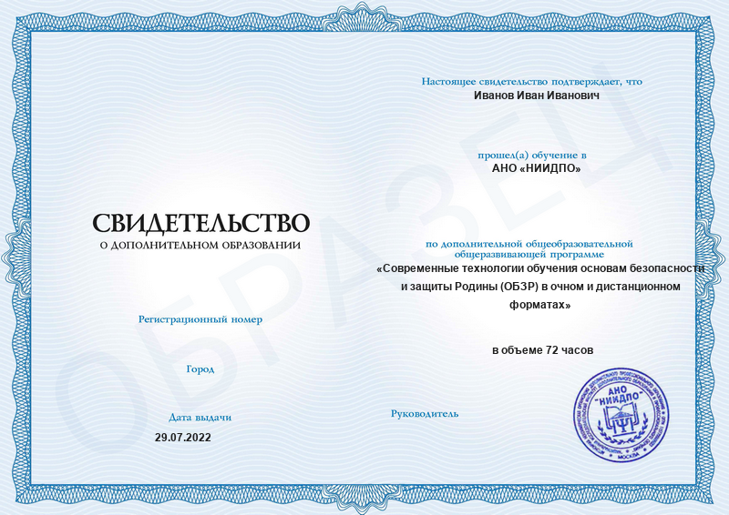 Современные технологии обучения основам безопасности и защиты Родины (ОБЗР) в очном и дистанционном форматах (72ч)