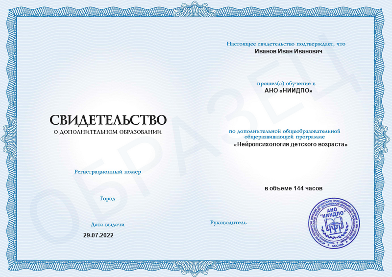 Свидетельство о дополнительном образовании. Вышлем его на вашу электронную почту в течение 14 рабочих дней после окончания обучения.