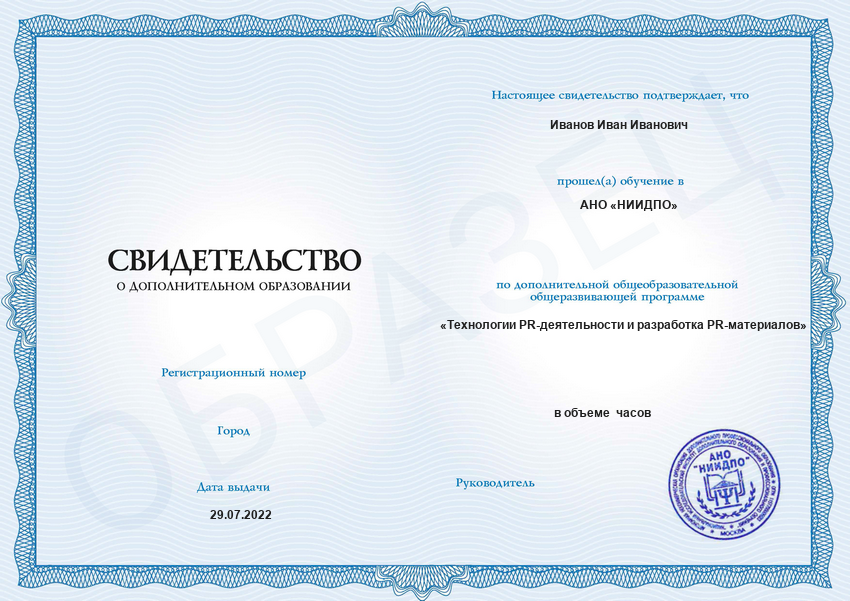Свидетельство о дополнительном образовании. Вышлем его на вашу электронную почту в течение 14 рабочих дней после окончания обучения.