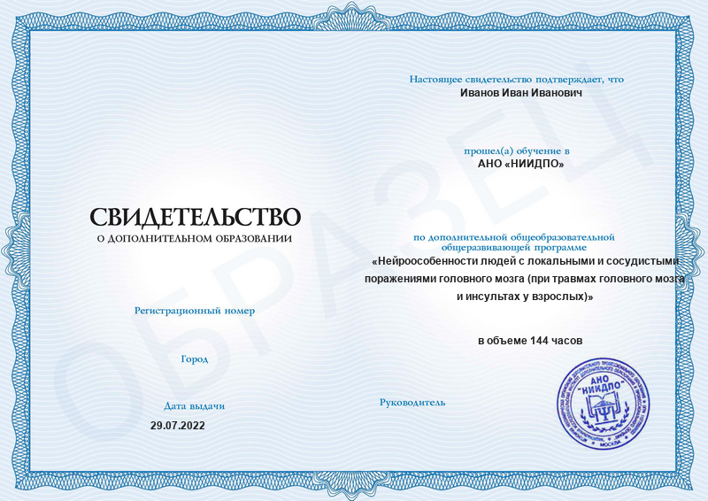 Учебный план дополнительной общеобразовательной программы «Нейроособенности людей с локальными и сосудистыми поражениями головного мозга (при травмах головного мозга и инсультах у взрослых)»