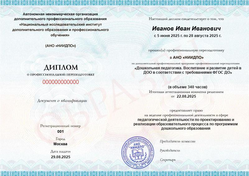 Да, выданный АНО «НИИДПО» диплом предоставляет вам право на ведение профессиональной деятельности в соответствии с квалификацией.