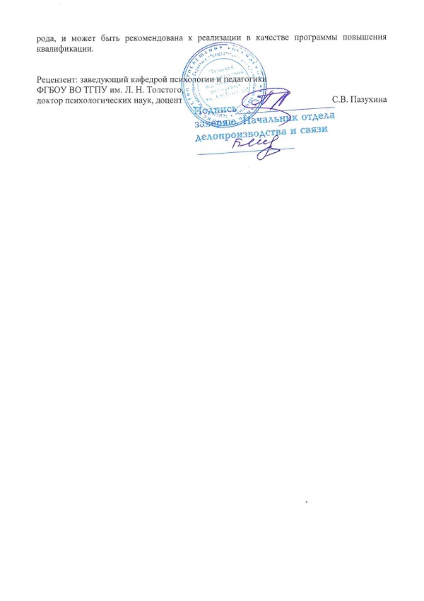 Читайте рецензию заведующего кафедрой психологии и педагогики ФГБОУ ВО «ТГПУ им. Л. Н. Толстого», доктора психологических наук С. В. Пазухиной.