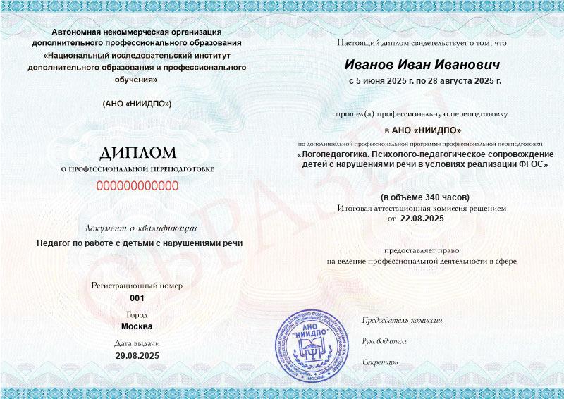 Да, документы оформляются на бланках с защитой от подделок, заполняются на русском языке, в них ставится печать АНО «НИИДПО».