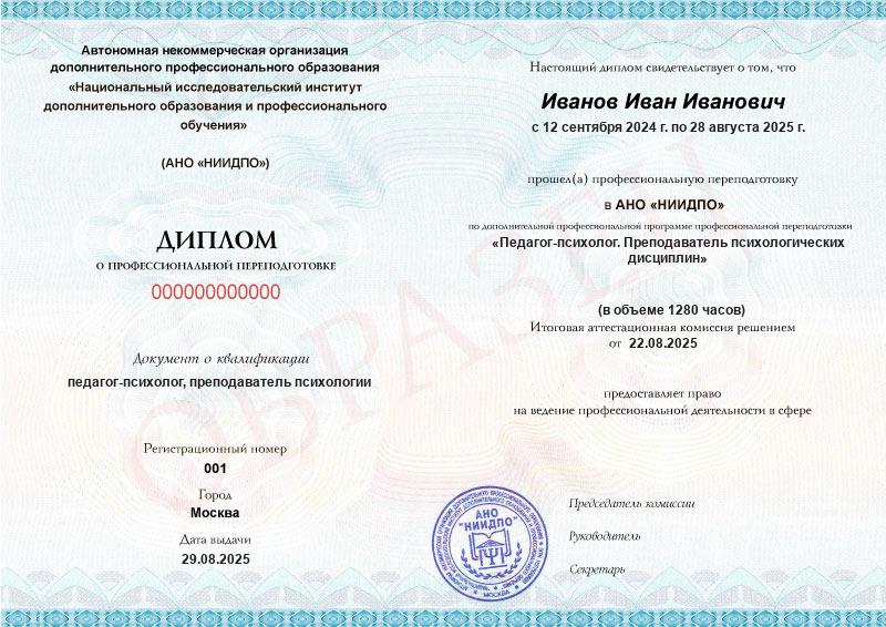 Педагог-психолог. Преподаватель психологических дисциплин (1280ч)