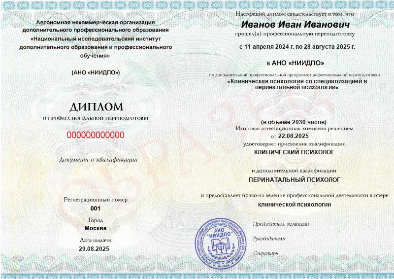 Диплом о профессиональной переподготовке московского института