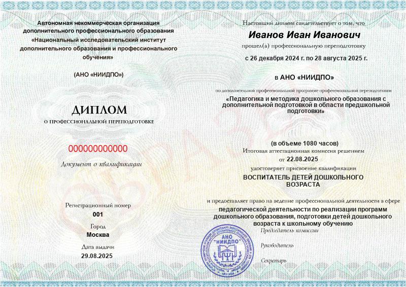 Согласно закону, дипломы о профпереподготовке могут быть оформлены в порядке, установленном образовательным учреждением (пункт 19 Порядка организации и осуществления образовательной деятельности по ДПП). Образцы квалификационных документов размещены на сайте нашей образовательной организации.