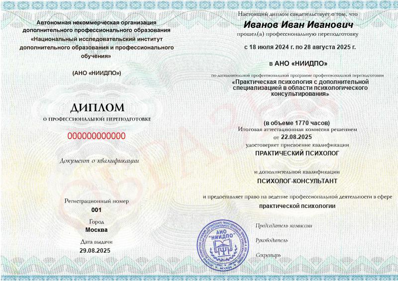 - 2 квалификации: Практический психолог + Психолог-консультант
