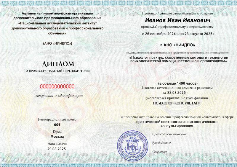 Психолог-практик: современные методы и технологии психологической помощи населению и организациям (1490ч)
