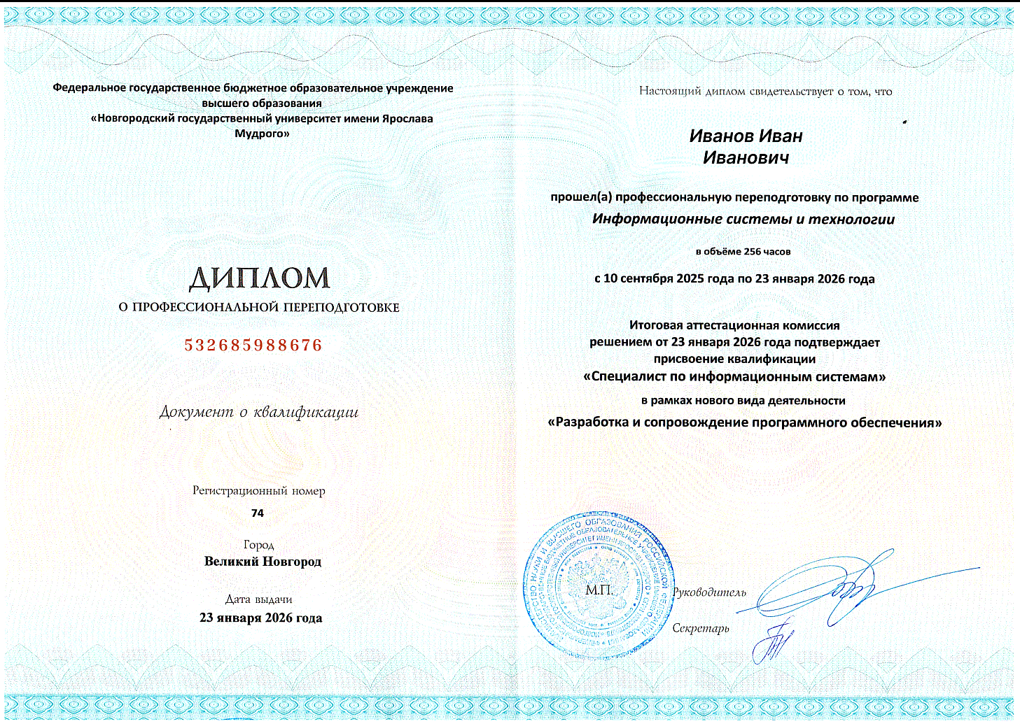 Программа реализуется совместно с Новгородским государственным университетом имени Ярослава Мудрого (НовГУ). Университет участвует в разработке и проводит академическую экспертизу программы. В результате вы получите фундаментальные знания и прикладные навыки, а также 2 диплома о профессиональной переподготовке после успешного окончания обучения.