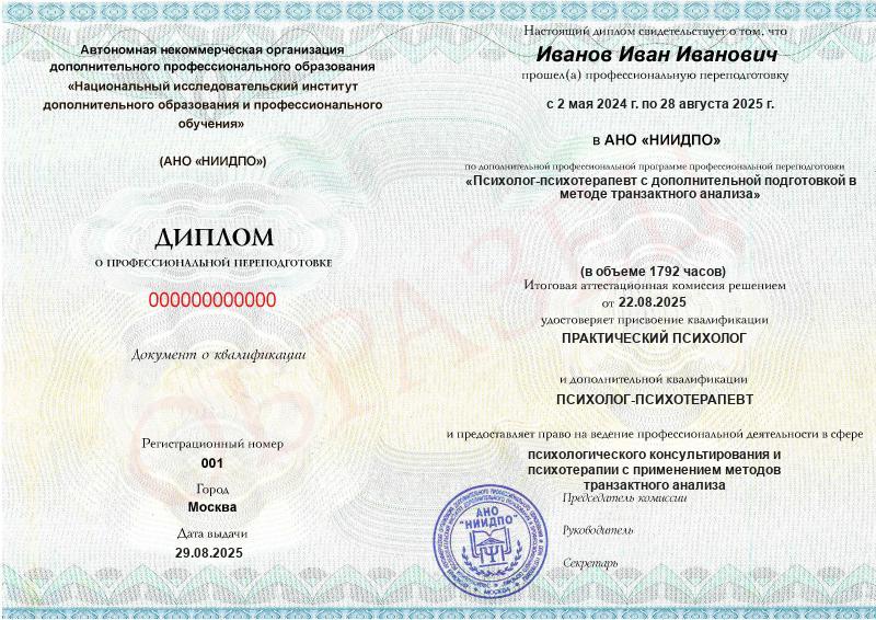 Психолог-психотерапевт с дополнительной подготовкой в методе транзактного анализа (1792ч)