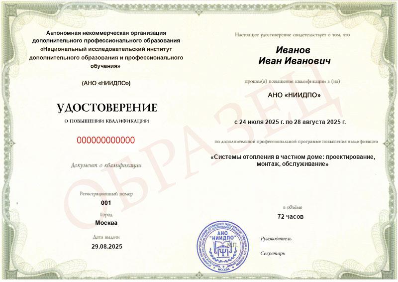 Системы отопления в частном доме: проектирование, монтаж, обслуживание (72ч)