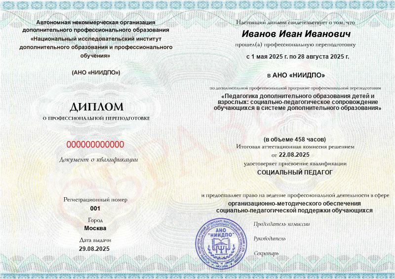 Студент, желающий поступить в АНО «НИИДПО», должен предоставить справку из образовательной организации. Независимо от срока окончания обучения по программе дополнительного образования, диплом о профпереподготовке выдаётся только после предъявления документа о получении среднего профессионального или высшего образования.