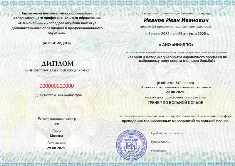 Обзор программы профессиональной переподготовки «Теория и методика учебно-тренировочного процесса по избранному виду спорта (вольная борьба)» с присвоением квалификации «Тренер по вольной борьбе»