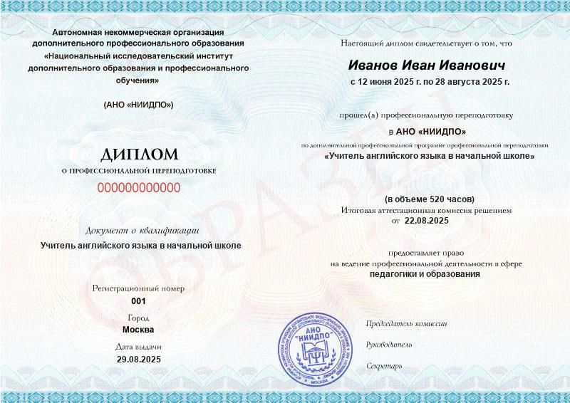 Да, документы оформляются на бланках с защитой от подделок, заполняются на русском языке, в них ставится печать АНО «НИИДПО».