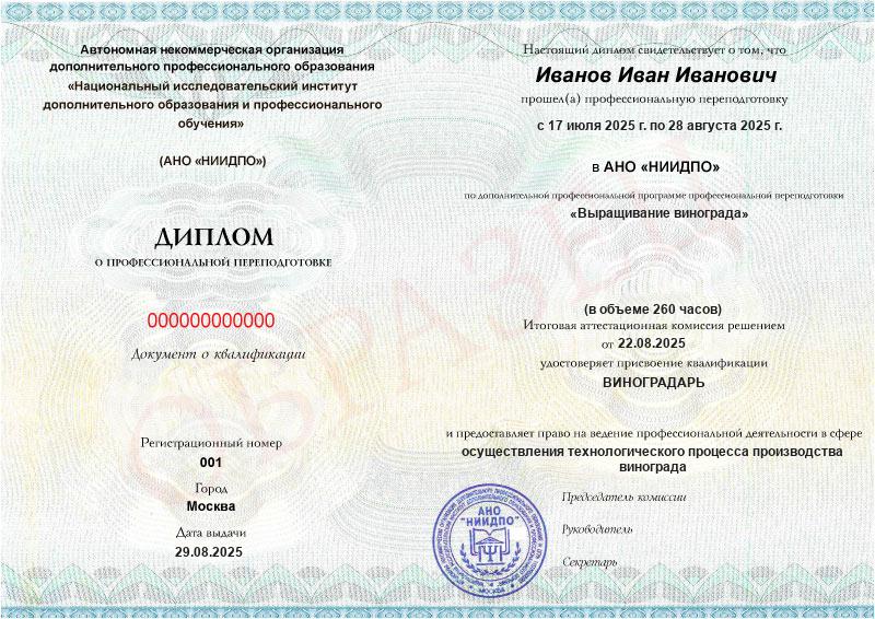 • Получите диплом с квалификацией виноградаря.